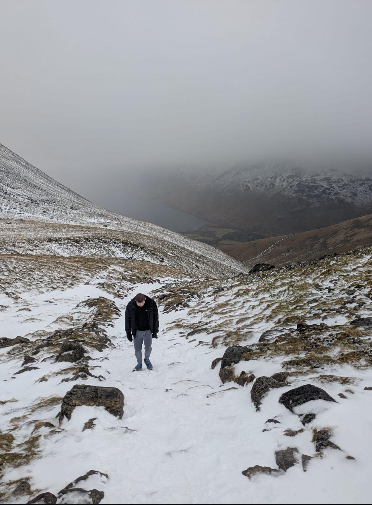 Despite having no previous hiking experience, he set himself the ambitious target of climbing Scafell Pike, the highest mountain in England. Standing at 978 metres, Scafell Pike is a significant undertaking for even experienced hikers, and the conditions on the day made the challenge even tougher. Battling cold winds, mist, and unpredictable weather, he continued to push himself forward, showing stamina and resilience throughout the ascent.